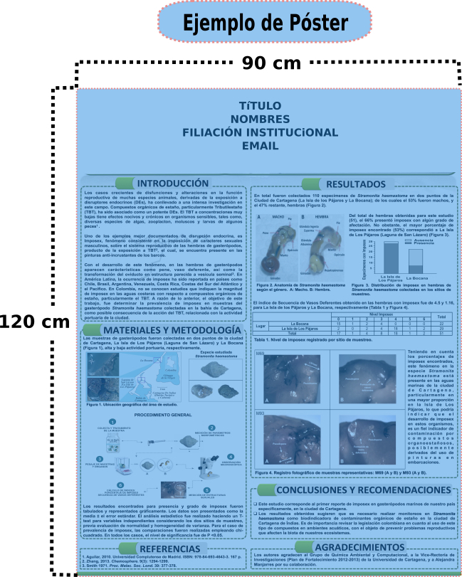 - Es recomendable que el tamaño de letra del título sea de al menos 3 cm (1.2"). Los esquemas y dibujos deben ser claros y de excelente resolución. Con respecto a las líneas y tablas, deben estar bien definidas.